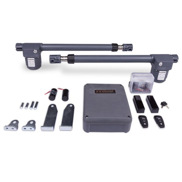 متعلقات داخل جعبه : دو عدد جک, دو عدد ریموت, یک جفت فتوسل (چشم درب), یک عدد فلاشر, مدارفرمان, اتصالات نصب, راهنمای نصب و راه اندازی, برگه گارانتی